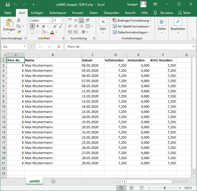 Excel Arbeitsnachweis Kug 2022 Kostenlose Vorlage |